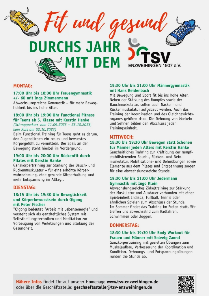 Bewegung hält jung, fit und macht Spaß – und beim TSV Enzweihingen findest du das passende Angebot für jedes Alter.
