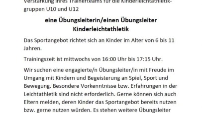 Unterstützung gesucht: Engagierte/r Übungsleiter/in für unsere Kinderleichtathletik-Gruppen U10 und U12!