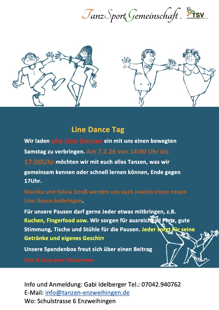 Line Dance Tag in Enzweihingen: Tanzen, neue Choreos und Gemeinschaft erleben.